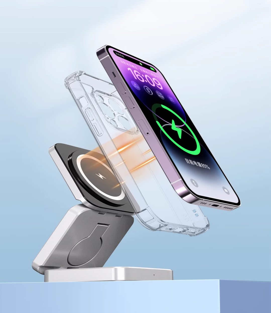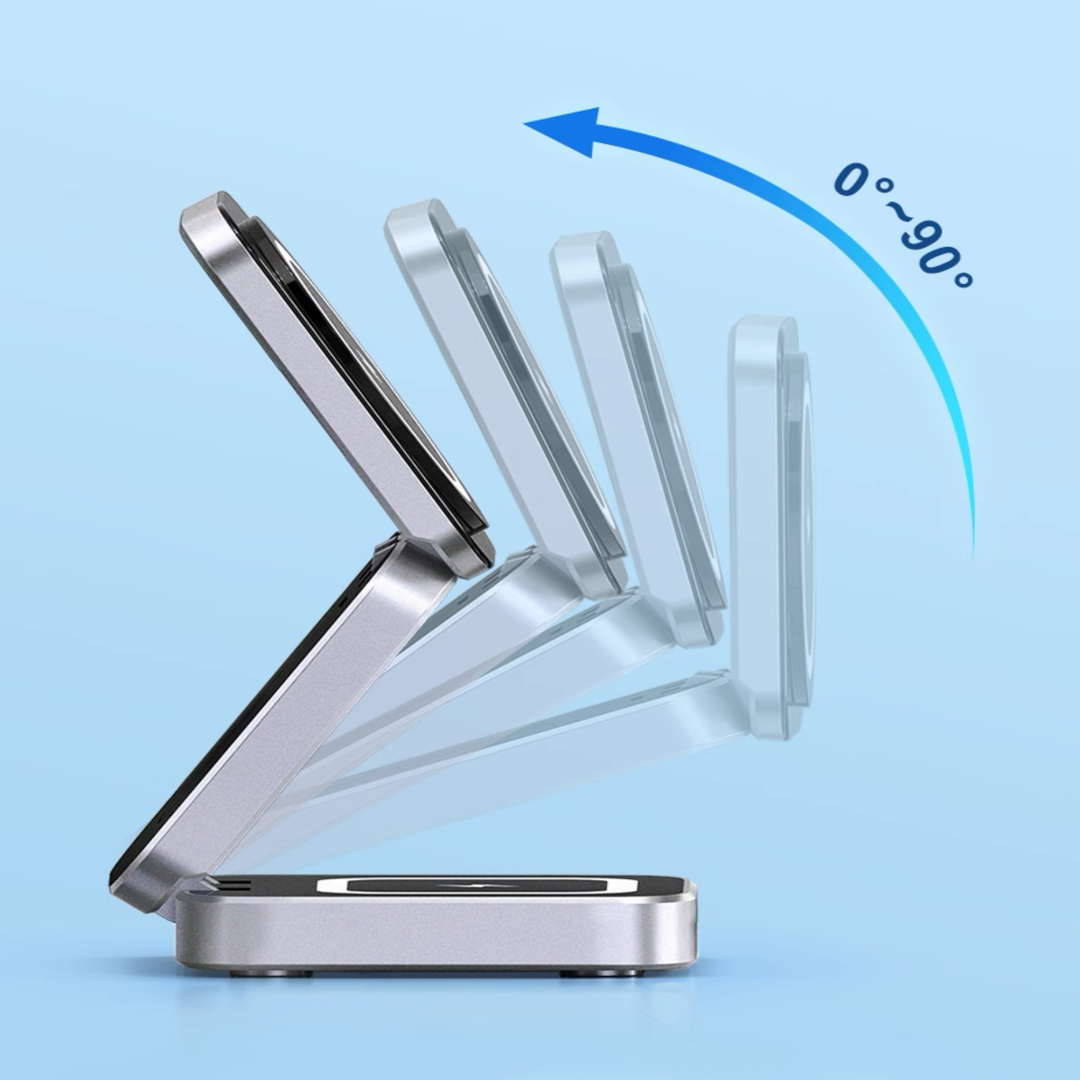The charger's adjustable design allows you to set the perfect viewing and charging angle for your devices. No matter the product's size, you can find the ideal angle without affecting performance.