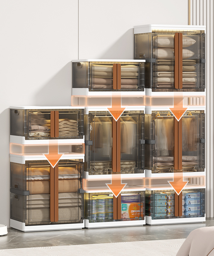 Maximize storage in limited space with our Foldable & Stackable Cabinet. This innovative storage solution allows for customizable stacking, making the most of every inch of space.