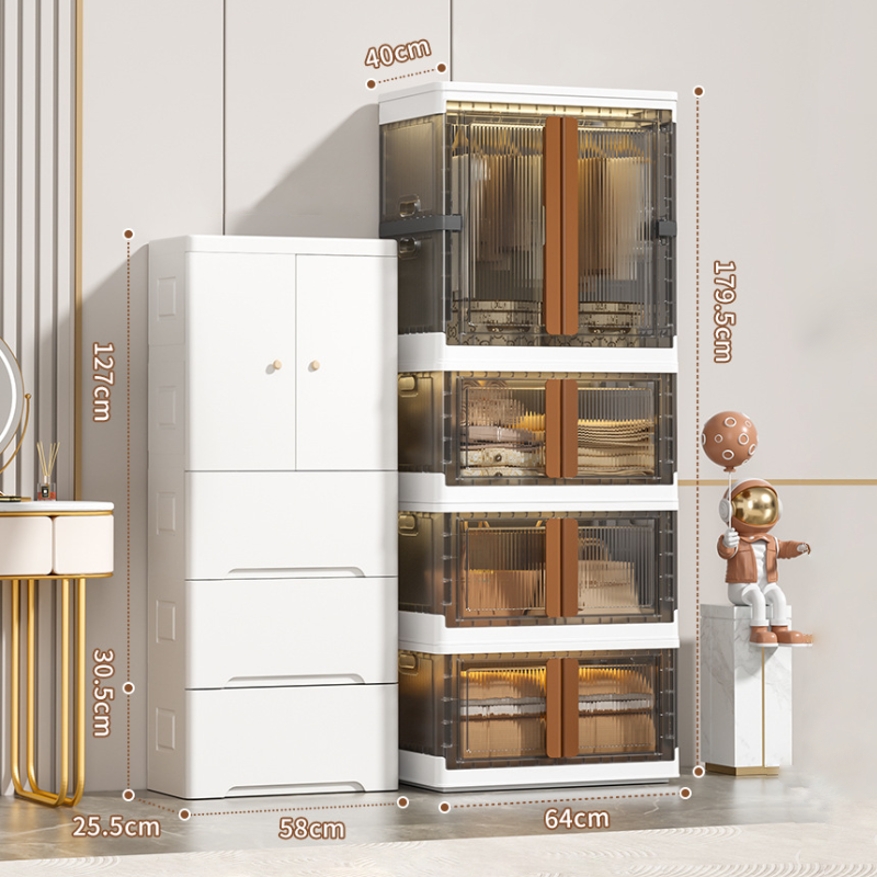 Upgraded to 1.5 times the storage space, each storage box measures 25‘’ in length and 15.5‘’ in width, providing ample storage for various seasonal items. Whether it's winter blankets or summer beach towels, this expandable folding storage cabinet has you covered.